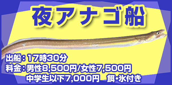 夜アナゴ 17時30分出船 21時30分帰港