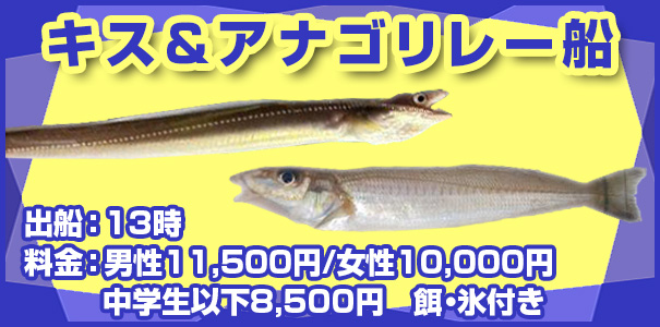 キス・アナゴリレー 13時出船 21時帰港